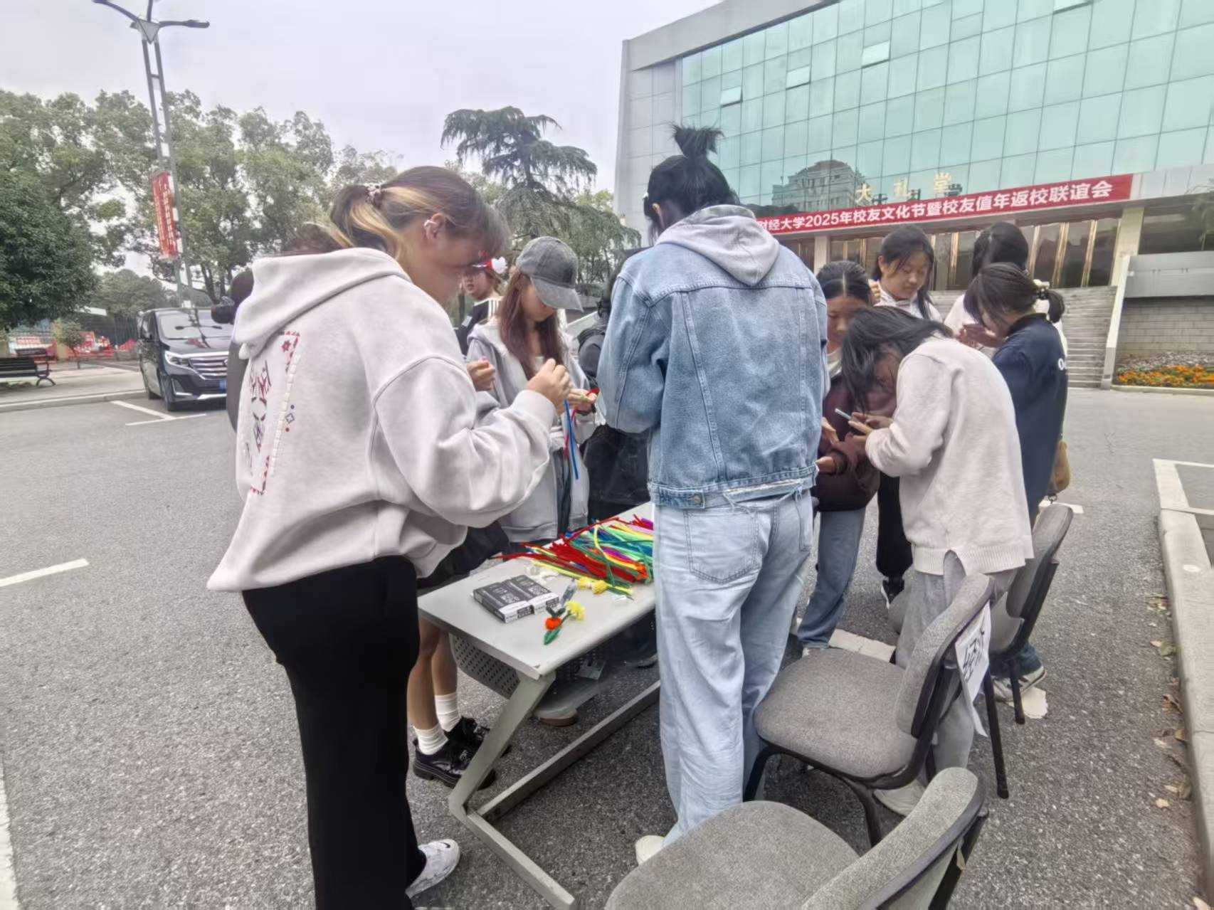 活动现场氛围轻松热烈,吸引了众多同学驻足参与。本次活动设置两大核心体验环节,让同学们在动手创作中释放情绪。在“掌心绘心”环节,大家拿起画笔勾勒手掌轮廓,或用绚烂图案描绘当下心情,或用励志语录传递积极信念,完成创作后,不少同学主动分享作品背后的情绪故事,在交流中收获理解与共鸣;“扭扭棒情绪花”环节里,同学们跟随教学视频,用色彩各异的扭扭棒制作出独一无二的花束,用灵动的花艺传递内心的期许与温暖。同时,参与活动的同学还兑换到了笔、糖等精美小礼品,收获了满满的成就感与幸福感。