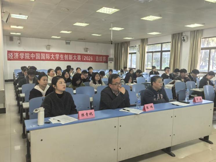 为营造浓厚的创新创业氛围,激发学生创新实践活力,主播视频 于3月11日在蛟桥园第五教学楼举办“中国国际大学生创新大赛(2026)”院级选拔赛。邀请罗东老师、张鹏老师、陈青祝老师担任评委,参赛团队齐聚一堂展示各自的创新成果。