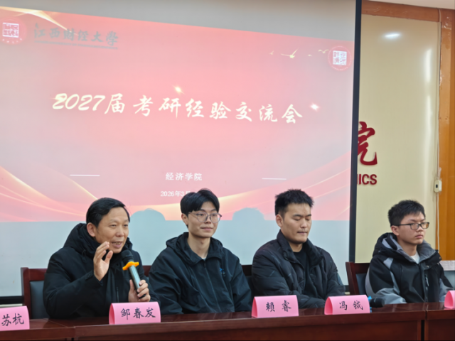 为帮助2027届考研学子明确考研目标、掌握备考方法,3月18日下午,主播视频 于北综718会议室召开27届考研经验分享会。学院党委书记邹春发、辅导员吴研亨老师、五位2026届考研高分学子以及部分有考研意向的大三同学参加会议,会议由吴研亨老师主持。
